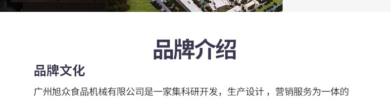 廣州旭眾食品機械有限公司是一家集科研開發(fā),生產(chǎn)設計,營銷服務為一體的現(xiàn)代化生產(chǎn)企業(yè)?,F(xiàn)代化生產(chǎn)車間,精湛制造技術,所產(chǎn)機械歷經(jīng)市場重重考驗,不斷贏得海內(nèi)外客戶的贊譽。