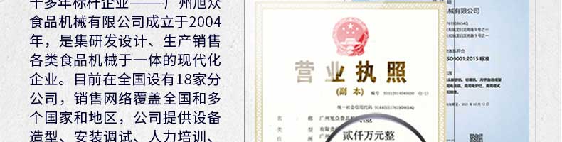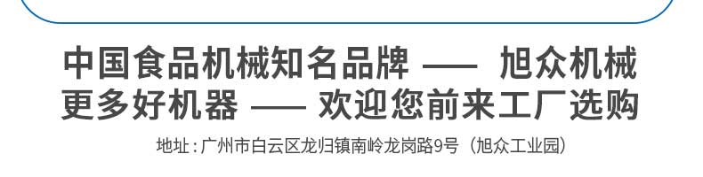 廣州旭眾食品機(jī)械有限公司是一家集科研開發(fā),生產(chǎn)設(shè)計(jì),營銷服務(wù)為一體的現(xiàn)代化生產(chǎn)企業(yè)?,F(xiàn)代化生產(chǎn)車間,精湛制造技術(shù),所產(chǎn)機(jī)械歷經(jīng)市場重重考驗(yàn),不斷贏得海內(nèi)外客戶的贊譽(yù)。