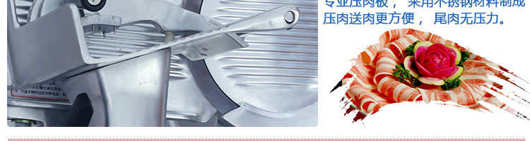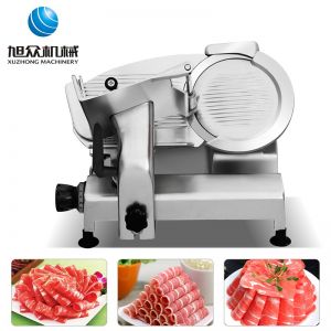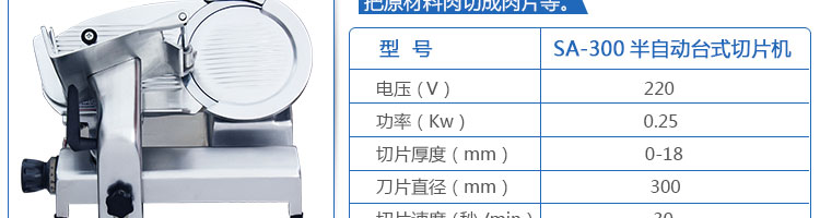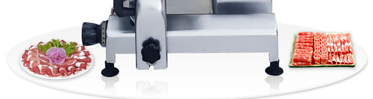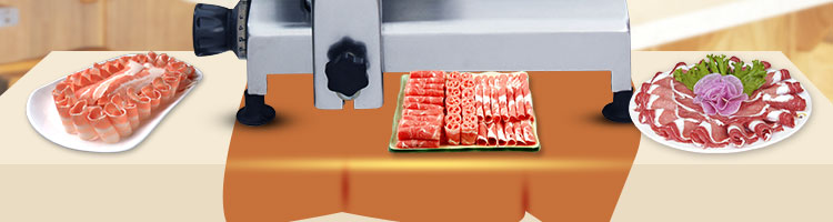 臺(tái)式半自動(dòng)切片機(jī),適合切無骨肉類和其他類似榨菜帶有彈性的食物,把原材料肉切成肉片,并可自動(dòng)成卷狀。可切牛肉片、羊肉片等