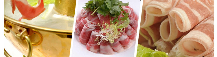 臺式全自動切片機,適合切無骨肉類和其他類似榨菜帶有彈性的食物,把原材料肉切成肉片,并可自動成卷狀。可切牛肉片、羊肉片等