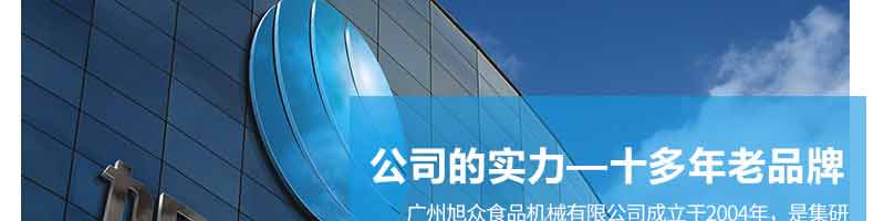 廣州旭眾食品機(jī)械有限公司是一家集科研開發(fā),生產(chǎn)設(shè)計,營銷服務(wù)為一體的現(xiàn)代化生產(chǎn)企業(yè)。現(xiàn)代化生產(chǎn)車間,精湛制造技術(shù),所產(chǎn)機(jī)械歷經(jīng)市場重重考驗,不斷贏得海內(nèi)外客戶的贊譽(yù)。