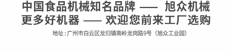 廣州旭眾食品機(jī)械有限公司是一家集科研開發(fā),生產(chǎn)設(shè)計(jì),營銷服務(wù)為一體的現(xiàn)代化生產(chǎn)企業(yè)?,F(xiàn)代化生產(chǎn)車間,精湛制造技術(shù),所產(chǎn)機(jī)械歷經(jīng)市場重重考驗(yàn),不斷贏得海內(nèi)外客戶的贊譽(yù)。